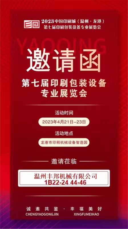 溫州豐邦機(jī)械有限公司參加2023中國(guó)印刷城溫州龍港第七屆印刷包裝設(shè)備專(zhuān)業(yè)展覽會(huì)