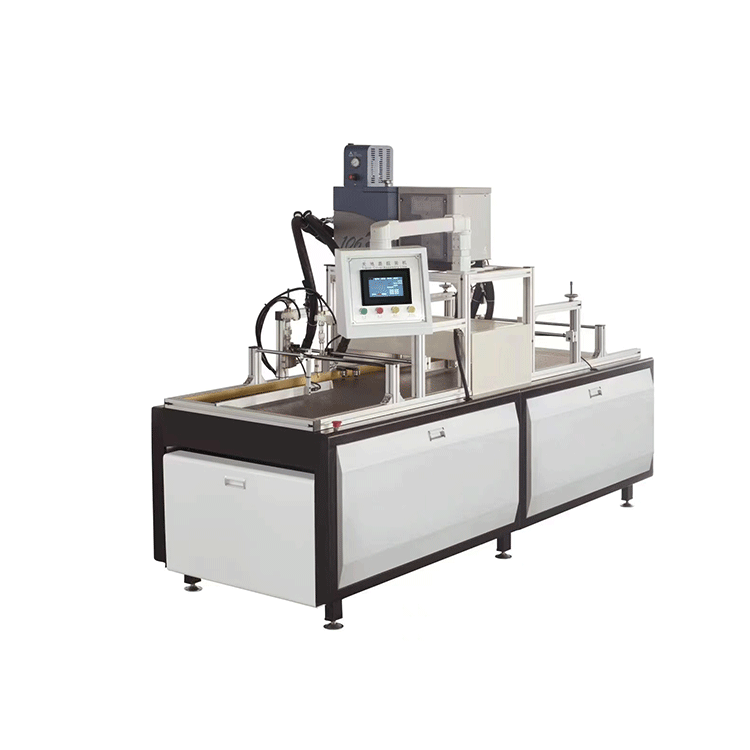 • FB-480,是我公司獨(dú)立研發(fā),國內(nèi)外首創(chuàng),本機(jī)最大優(yōu)點(diǎn)是操作簡單,速度快,噴槍固定,圍框自動定位,皮帶輸送不停機(jī)噴膠原理,有效解決了天地蓋組裝機(jī)的速度慢和粘連性能。